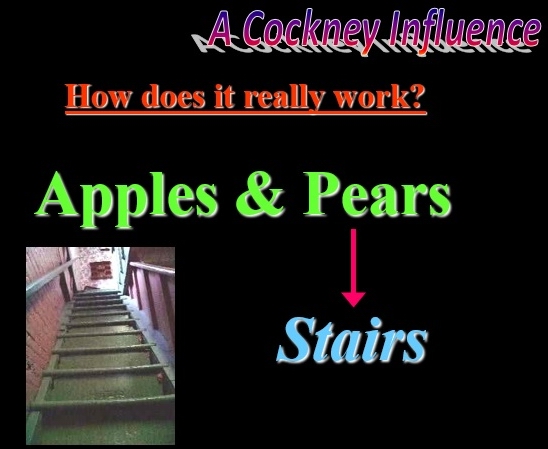 This talk looks at how the Cockney dialect from the East End of London started, how it works and how it has affected the English language today. Cockney is an old rhyming slang dialect which originated from the East end of London. Although no-one speaks fluent Cockney any more, residents in this area of London still use a lot of words. But many Cockney words have slipped into the English language and are used in everyday speech all over England. Some Cockney slang has made it into dictionaries.